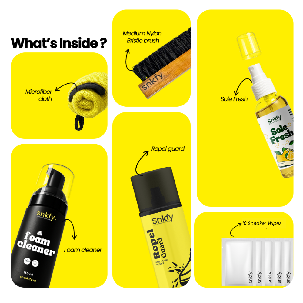 Meet the SNKFY Sneaker Travel Essential Kit, your ultimate all-in-one sneaker cleaning and protection companion. Whether you’re on a trip, at the gym, or on the go — this kit ensures your sneakers always look box-fresh and smell brand new.